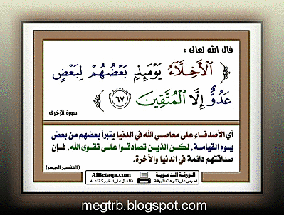 فمعنى الآية أن الأصدقاء على معاصي الله في في ظلال القران الكريم و السنة النبوية فيسبوك