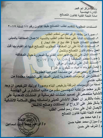 فتح باب التقدم للتصالح على مخالفات البناء وتقنين الاوضاع والمستندات المطلوبة للتقديم طبقا للقرار رقم 17 لسنة 2019