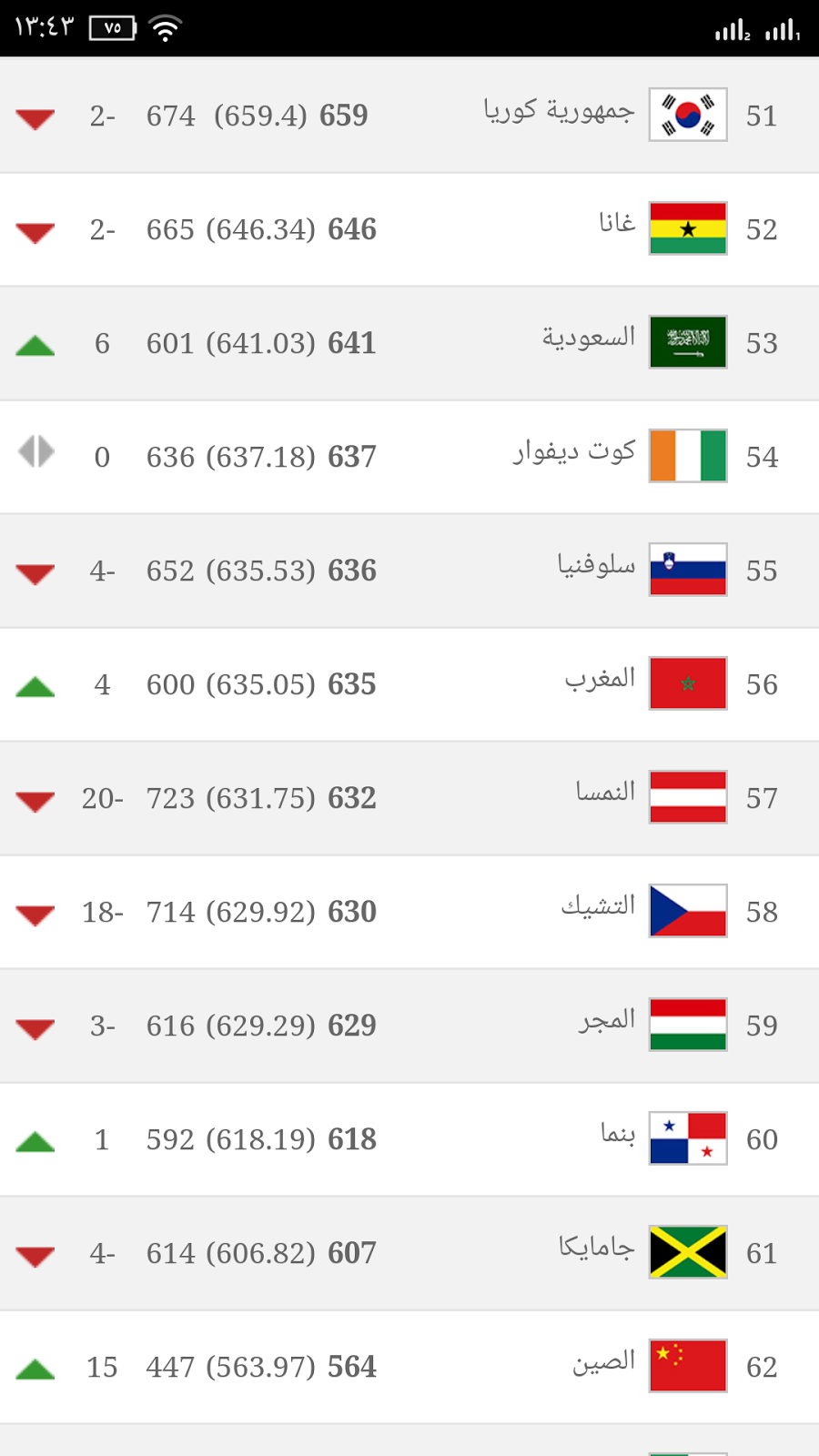 فالصو تعرف على ترتيب منتخب مصر عالميا فى تصنيف الفيفا